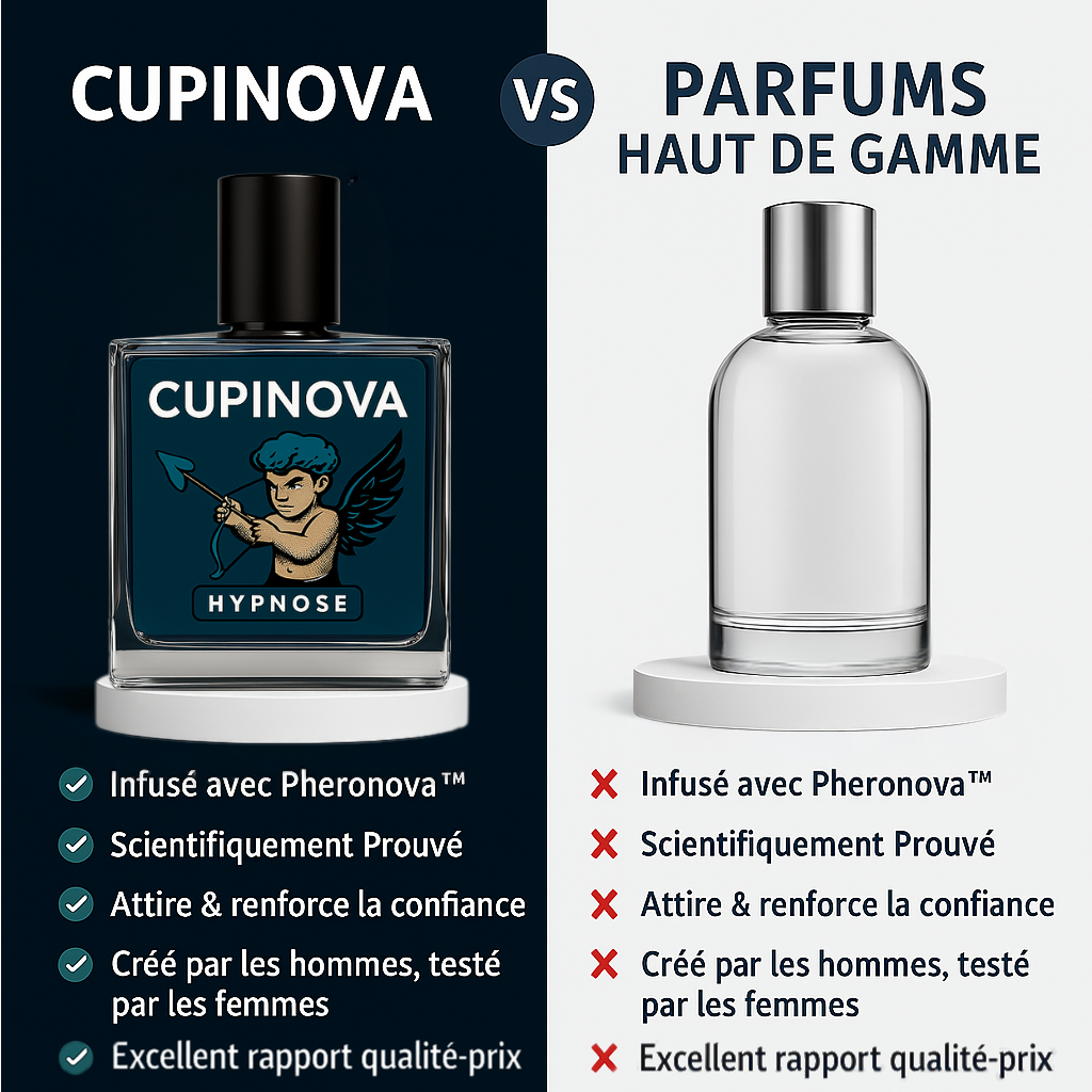 Cupinova est né d’un constat simple : certains hommes dégagent un charisme naturel… et ce n’est pas un hasard. Créé par Julien Marceau, passionné par la psychologie sociale et la parfumerie, Cupinova allie un parfum élégant à l'effet subtil mais réel des phéromones actives. Le résultat ? Un boost immédiat de confiance, de présence, et de magnétisme social.